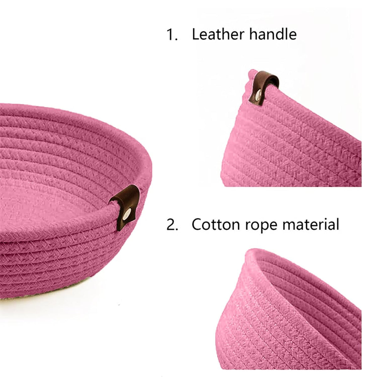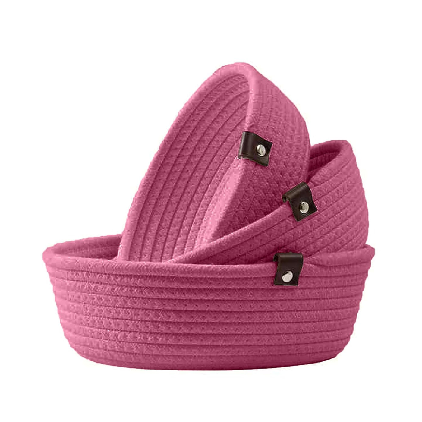 This pink cotton rope storage bowl set brings a soft and modern touch to your home décor. Made from premium-quality woven cotton rope, these bowls are durable, lightweight, and eco-friendly. The beautiful pink colour adds warmth and charm, while strong leather tab accents enhance both style and functionality. Perfect for storing fruits, cosmetics, toys, accessories, or daily essentials while keeping your space organized and stylish.