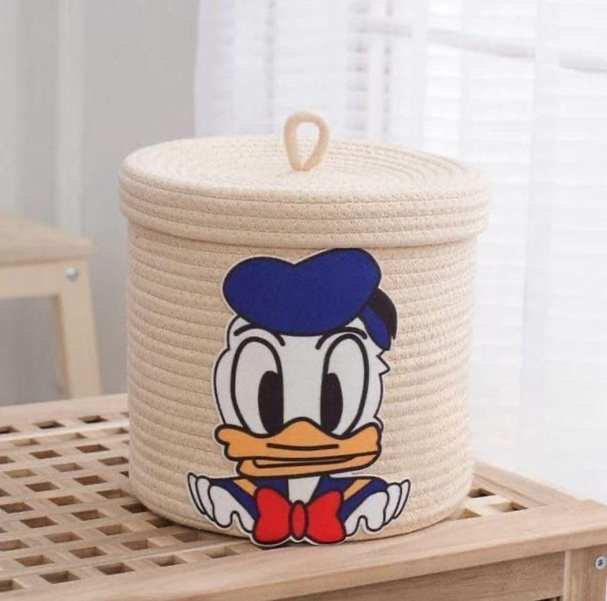 Beige Donald Duck Storage Basket with Lid for Kids Room Toy