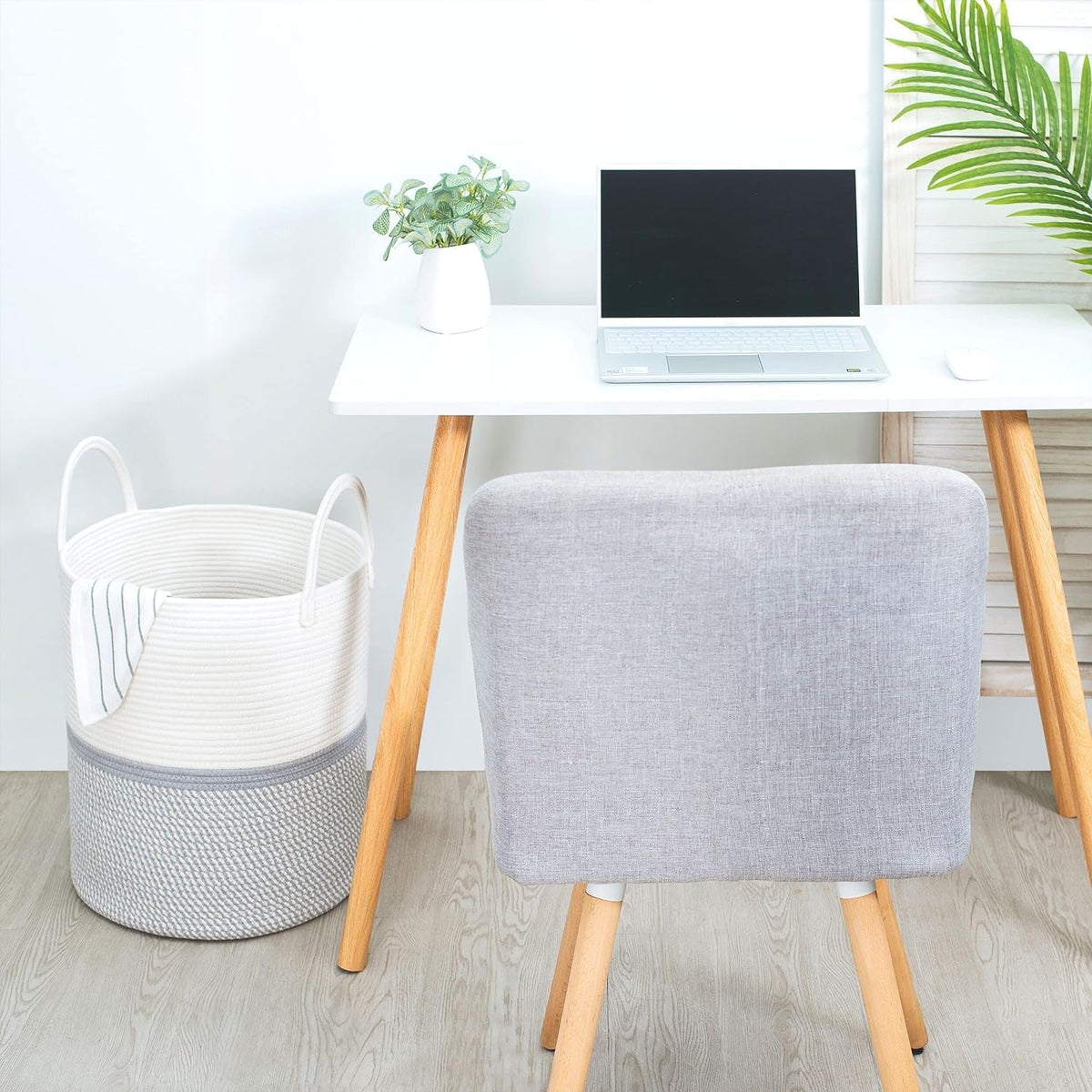 Cotton Rope Laundry Storage Basket White Grey Home Organizer